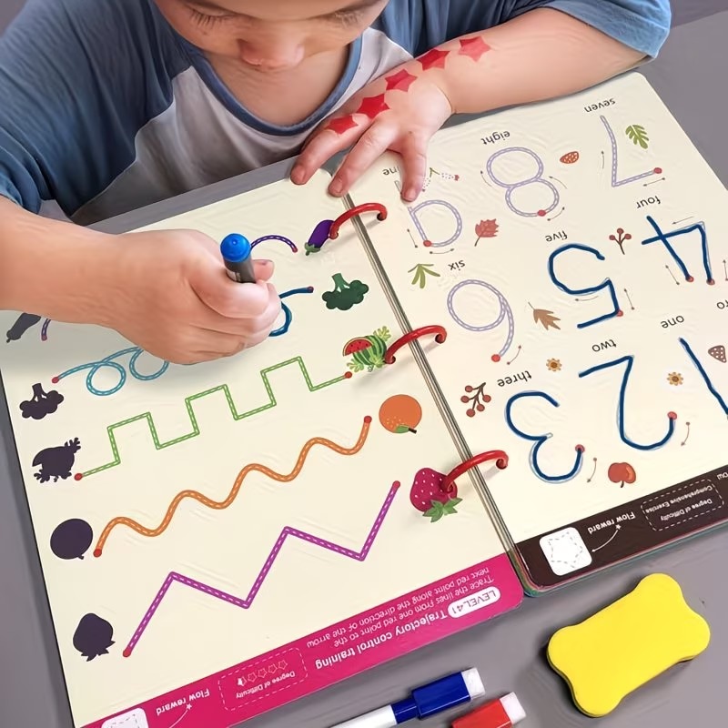 This 64-page reusable tracing workbook is designed to support early writing development through guided line and pattern practice. The pages feature structured tracing activities, including shapes, lines, and basic letter or number forms that can be practiced repeatedly. The reusable surface allows children to write, erase, and try again, making it suitable for ongoing learning sessions. Ideal for home or educational use, it provides a simple and engaging way to introduce writing skills.